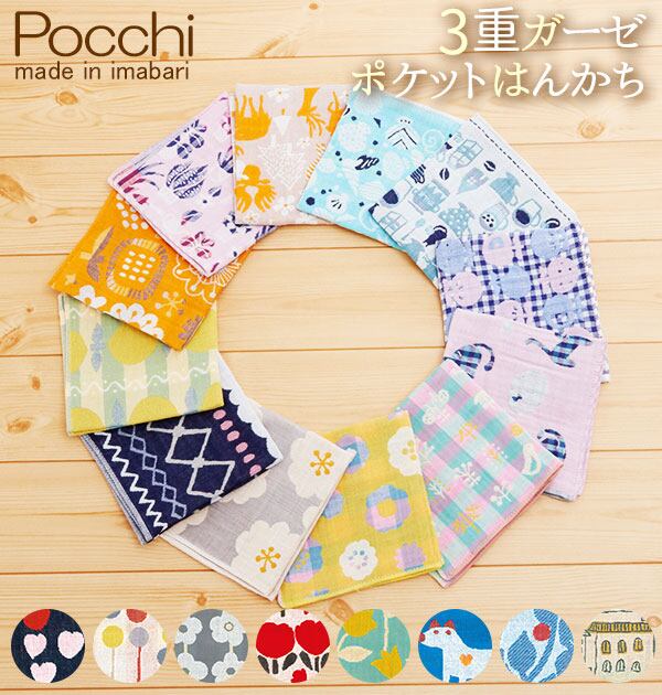ポケットやかばんに入れやすいコンパクトサイズのハンカチ。3枚合わせのハンカチなので、薄手だけど吸水性に優れ、丈夫で柔らかくサラっとした肌触りが魅力的。