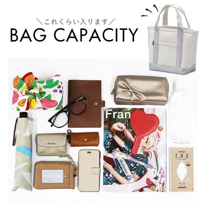 ・マチが程よくあり、ランチボックスや500mlペットボトルがすっぽり収まる♪B5サイズも横置きでジャストに収納できるので、通勤・通学用のミニトートにオススメ。
