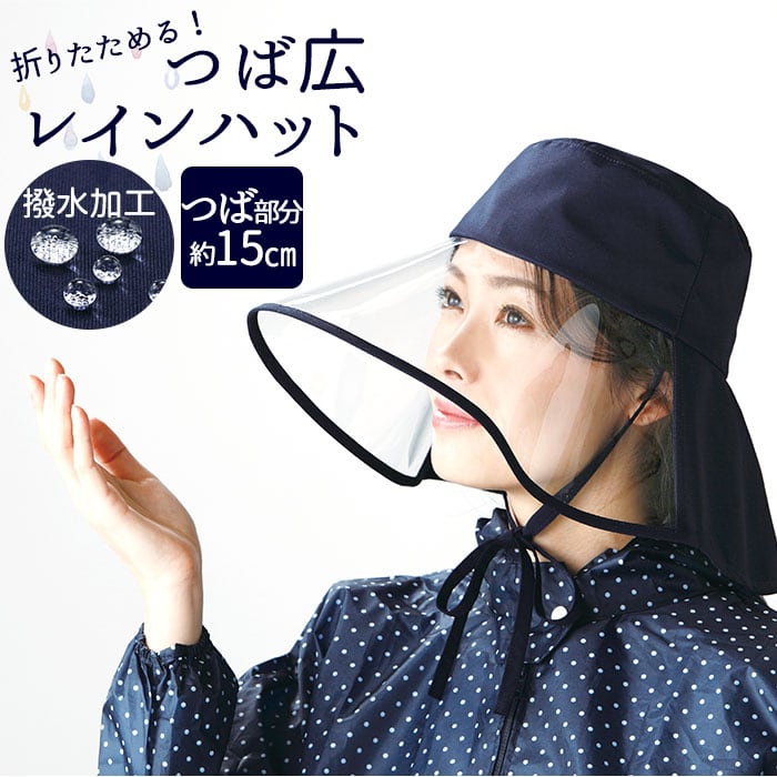 レインハット レディース 自転車 通販 撥水 はっ水 つば広 透明つば 透明ツバ 折りたたみ あご紐付き 雨の日 帽子 雨 ガード 雨をしっかりガード つば広レインハット レインコート 雨具 レインウエア レインウェア