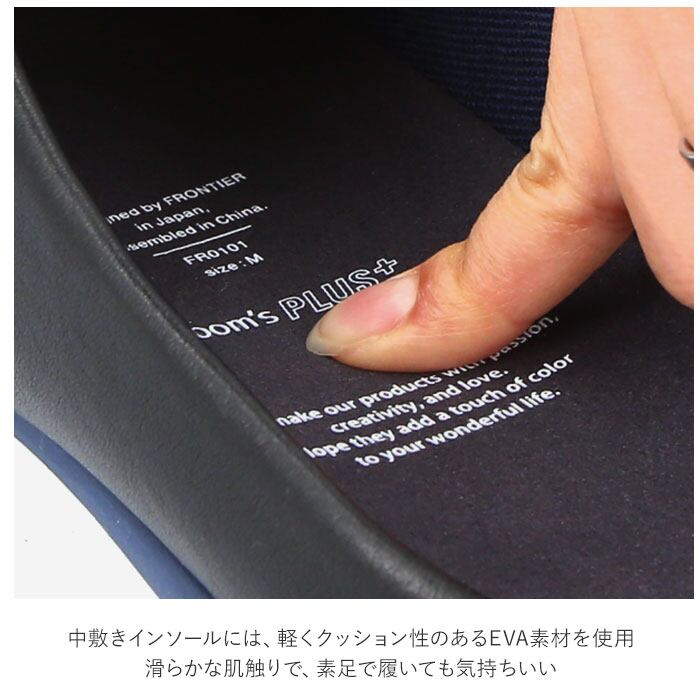 ・中敷きインソールには、軽くクッション性のあるEVA素材を使用。滑らかな肌触りで、素足で履いても気持ちいい。