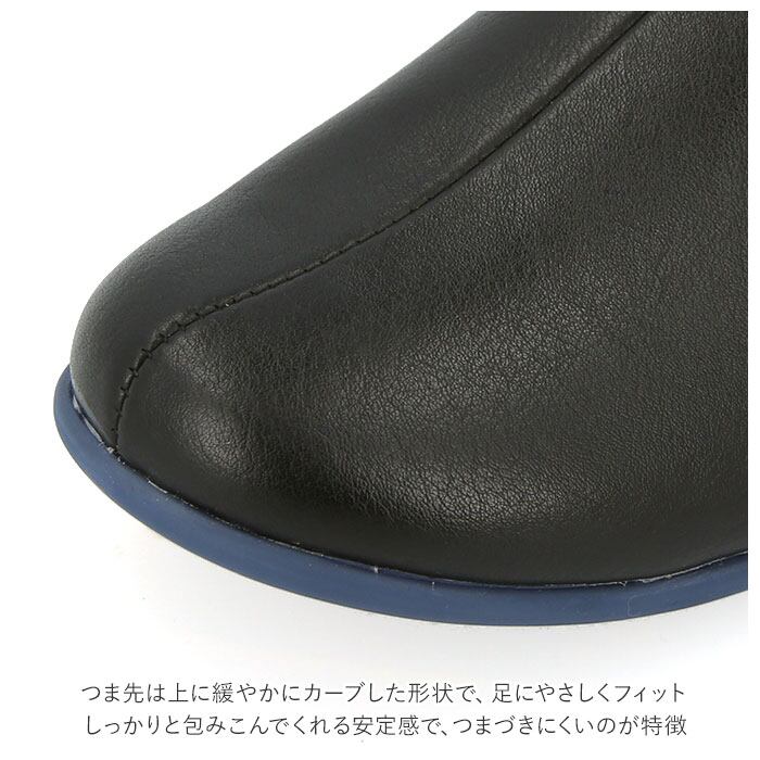 ・つま先は上に緩やかにカーブした形状で、足にやさしくフィット。しっかりと包みこんでくれる安定感で、つまづきにくいのが特徴。