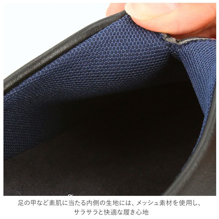 ・足の甲など素肌に当たる内側の生地には、メッシュ素材を使用し、サラサラと快適な履き心地。