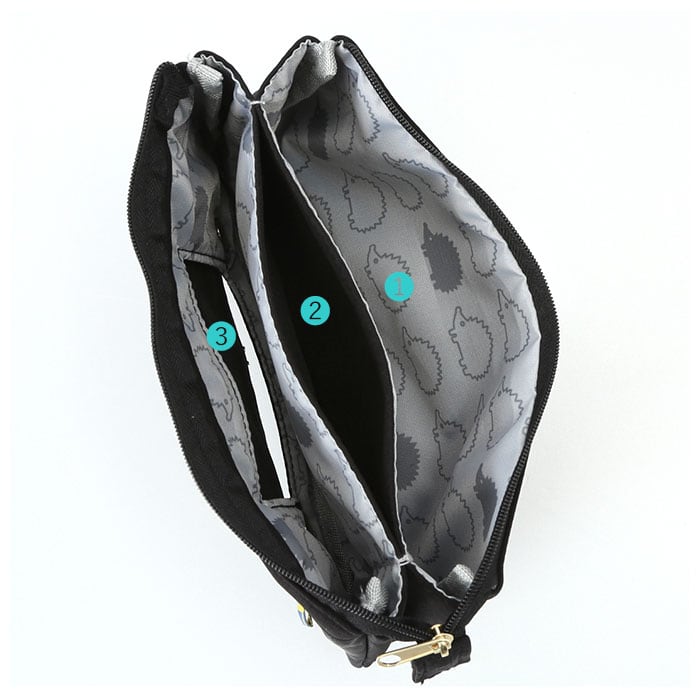 ・フロントのウェットティッシュ用ポケットを含めて、全部で3つのポケットを装備。不織布のマスクや除菌スプレーなど、除菌グッズをひとまとめに。