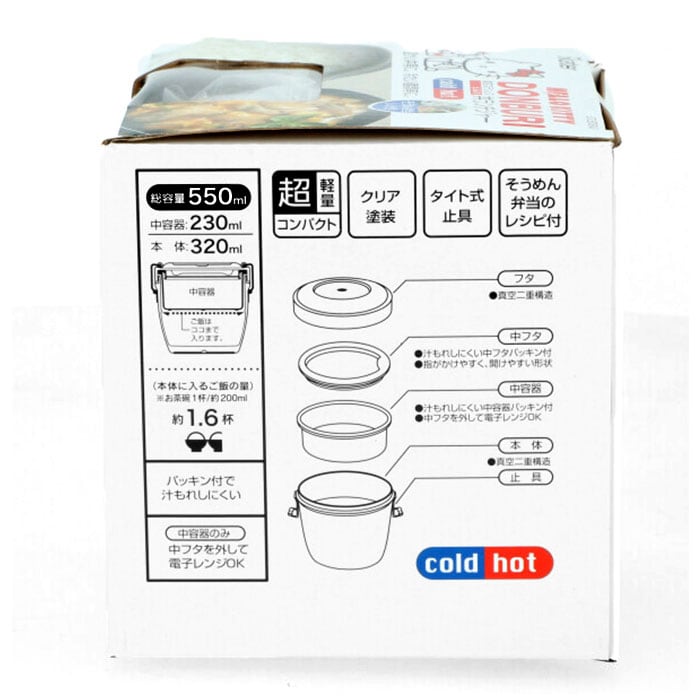 ・コンパクトサイズなのに容量はたっぷり550ml。お茶碗約1.6杯分のごはんがしっかり入り、食べ盛りのお子さまや毎日お仕事を頑張っているパパさんも大満足♪(※本体:320ml・中容器:230ml。お茶碗1杯分を約200mlとして計算しています。)
