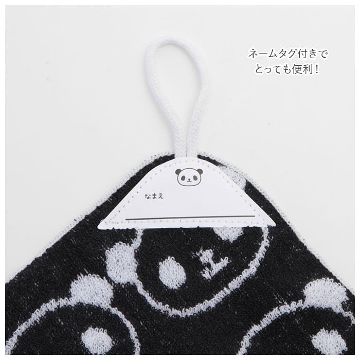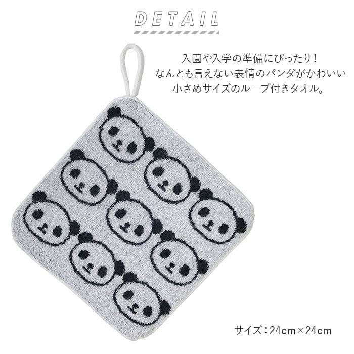 ・入園や入学の準備にぴったり!なんとも言えない表情のパンダがかわいい、小さめサイズのループ付きタオル。