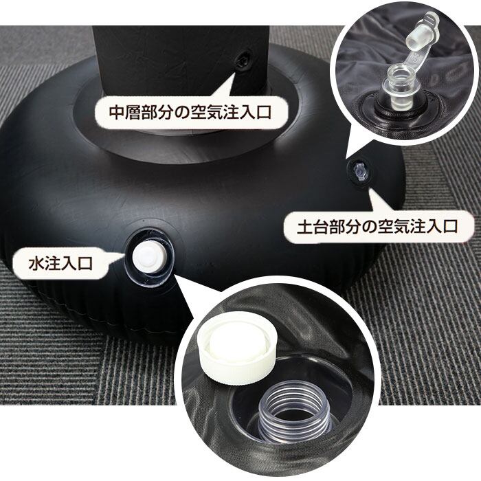 ・本体底部分に水を入れて基礎部分を安定させたら、あとは空気で膨らませるだけ。