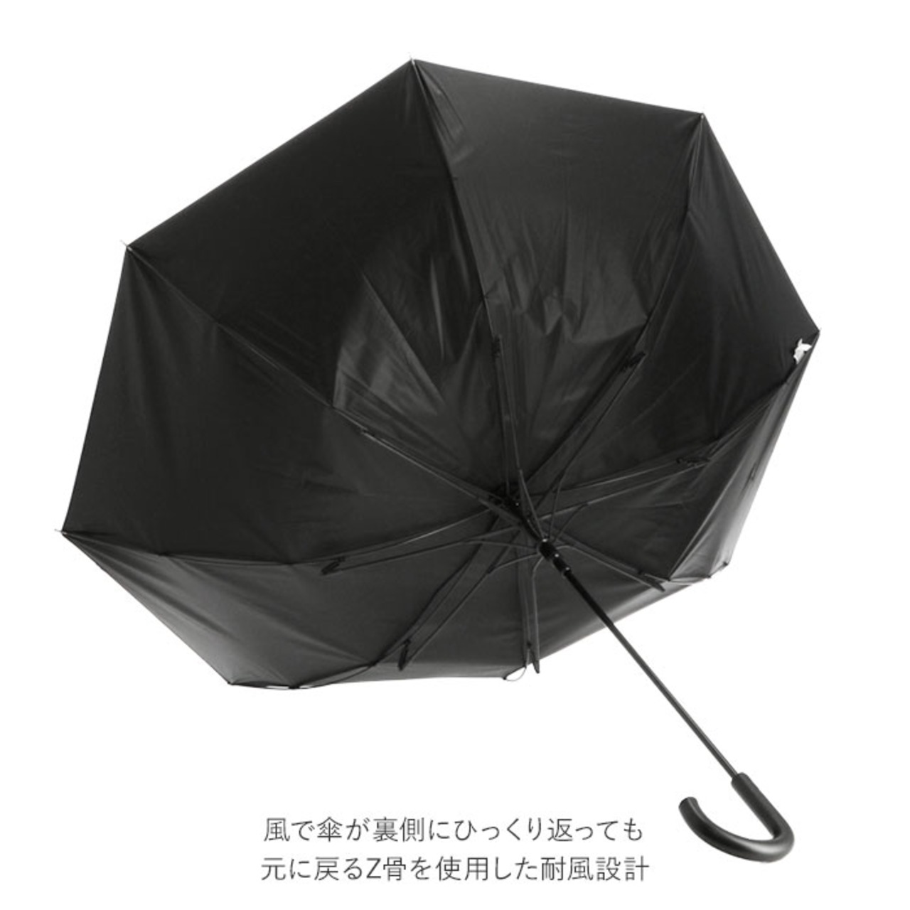 ・風で傘が裏側にひっくり返っても元に戻るZ骨を使用した耐風設計。