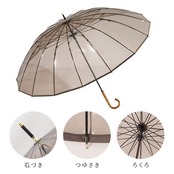・通常の傘よりも骨数の多い、耐風性に優れた幅広の16本骨仕様で、雨風の強い日でも頼りになる1本に。