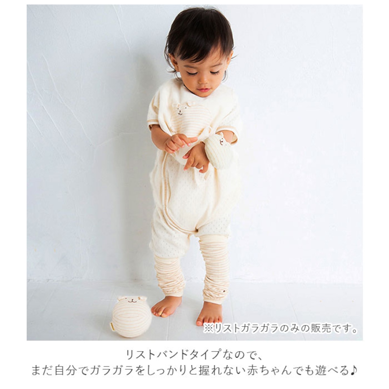 ・リストバンドタイプなので、まだ自分でガラガラをしっかりと握れない赤ちゃんでも遊べる♪