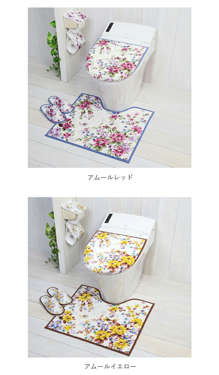 ・トイレ足元マット・ペーパーホルダーカバー・兼用フタカバーの3点は洗濯ネットに入れて簡単にお洗濯が可能!手洗いがOKのスリッパもお手入れラクチンでいつも清潔!