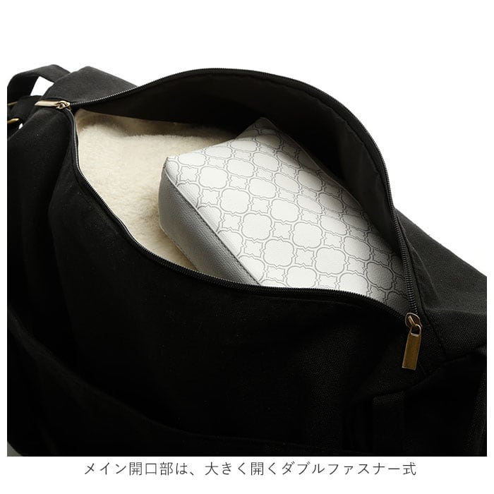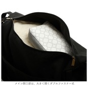 ・メイン開口部は、大きく開くダブルファスナー式で小物出し入れがラクちん。内側にはオープンポケットが1つ付いて自分仕様に小物が整理できる♪