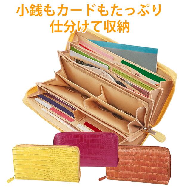 ファスナー付き小銭入れは4つに仕切られていて種類ごとに分けられます。ゴブラン柄やクロコダイル調など、高級感のあるデザインです。