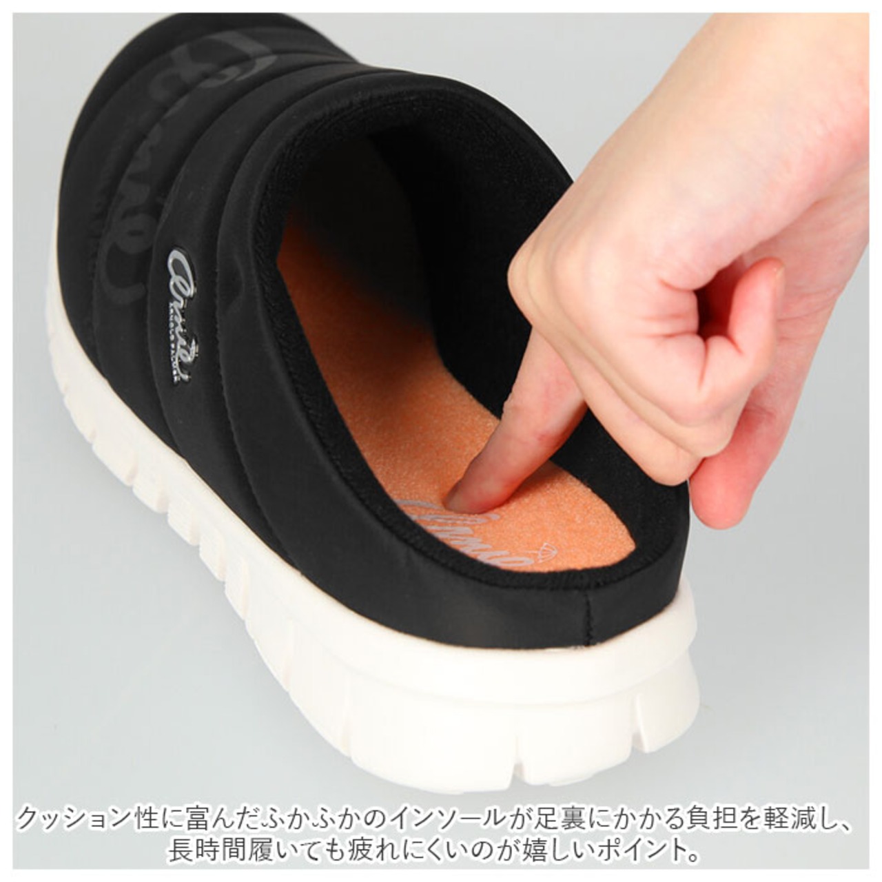 ・クッション性に富んだふかふかのインソールが足裏にかかる負担を軽減し、長時間履いても疲れにくいのが嬉しいポイント。