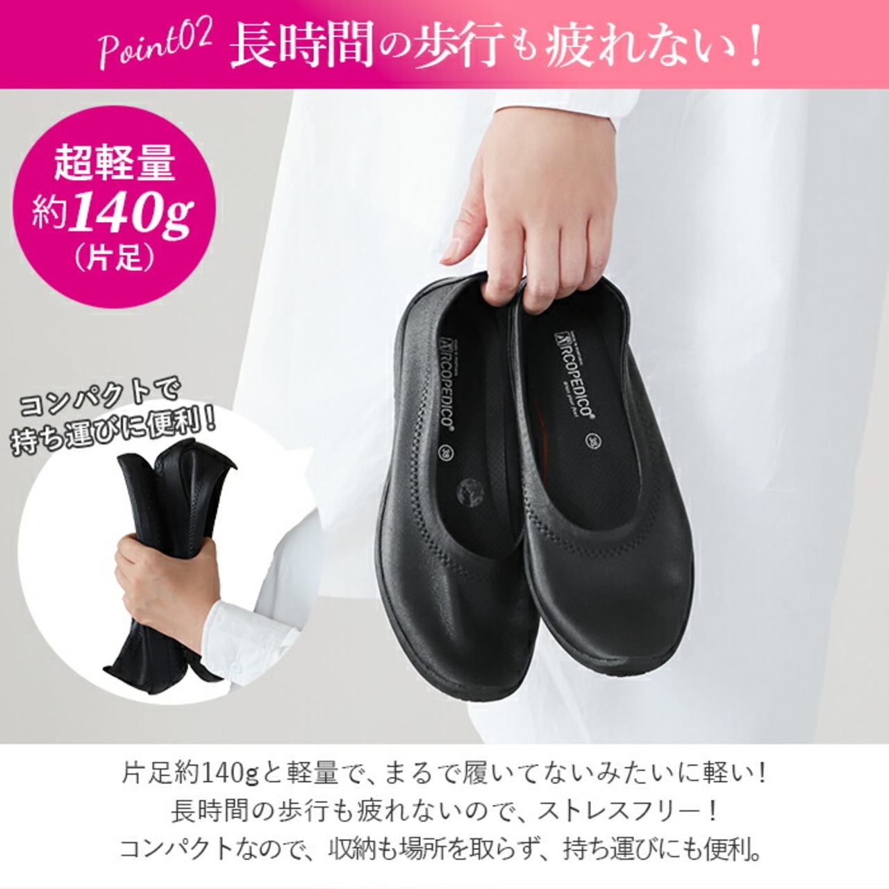 ・また、とっても軽量で持ち運びにも便利なので、外履きだけでなくドライビングシューズとしてのご使用もおススメ。