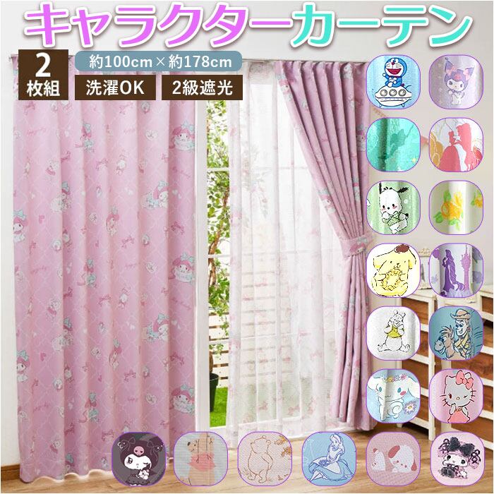 ・遮光遮熱機能付き!全体にデザインされたキャラクター柄が可愛い、カーテン2枚組♪(100×178cmサイズ)