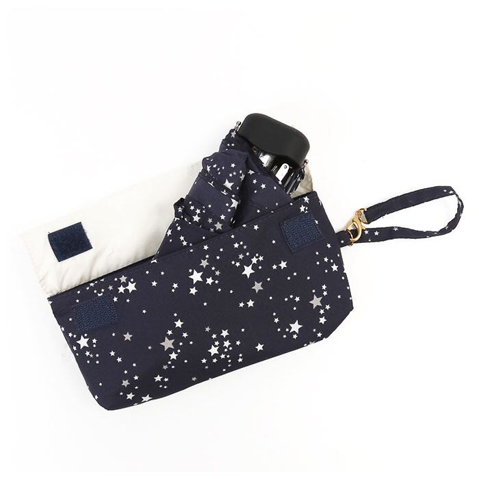 ・傘入れは可愛さと実用性を兼ねたポーチタイプで、バイカラーがアクセント!面ファスナーで開閉しやすいのも魅力◎