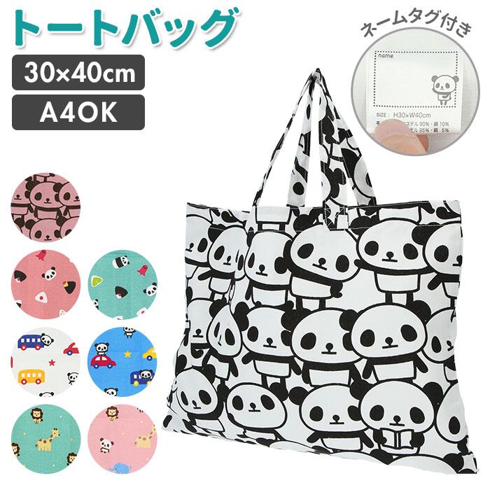 ・パンダのプリントデザインが可愛い♪習い事や通学のサブバッグとして活躍する、トートバッグ。