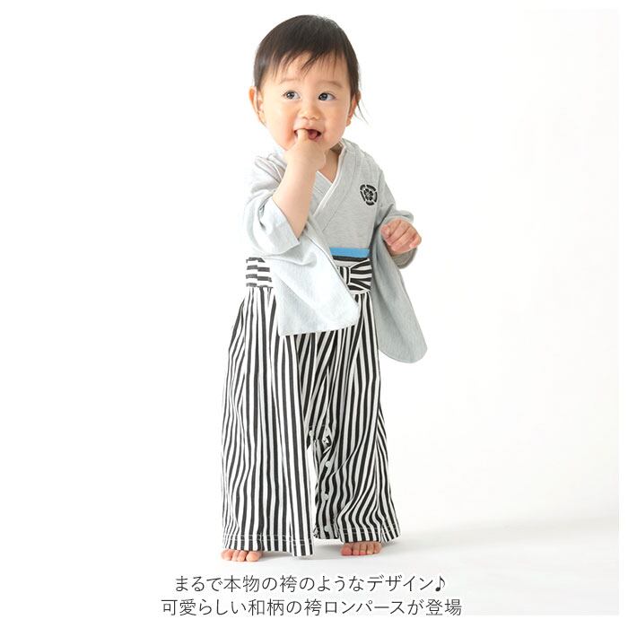 ・まるで本物の袴のようなデザイン♪可愛らしい和柄の袴ロンパースが登場。