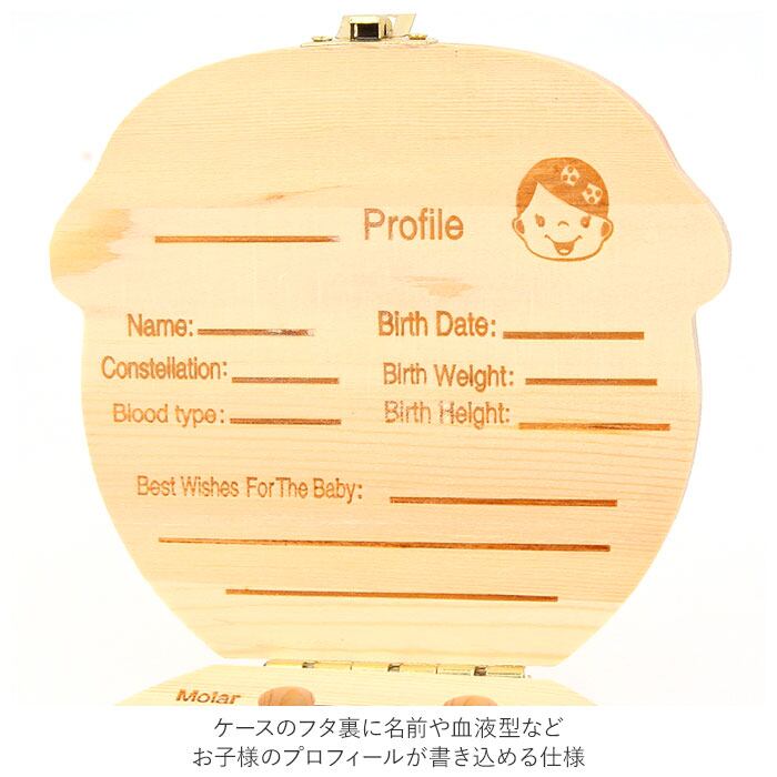 ・ケースのフタ裏に名前や血液型など、お子様のプロフィールが書き込める仕様。