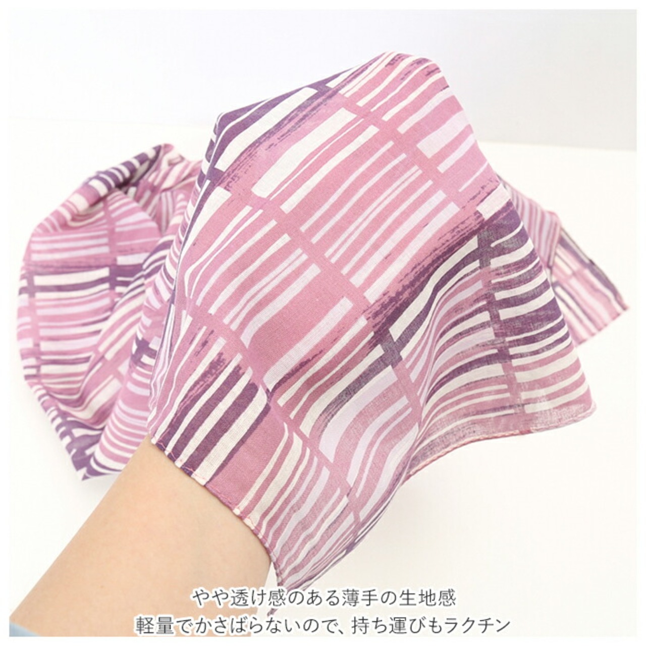 ・やや透け感のある薄手の生地感。軽量でかさばらないので、持ち運びもラクチン。