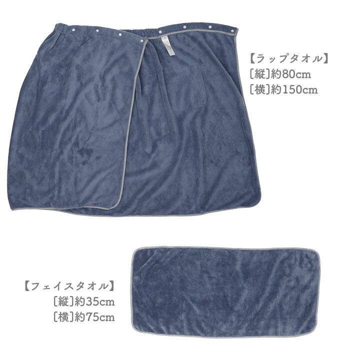 ・お風呂上りはもちろん、プールやジムでの着替え時も活躍!大判ラップタオルと使い勝手抜群のフェイスタオルのセット。