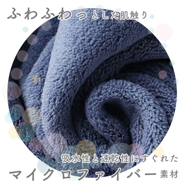 ・ふわふわとした肌触りのよいタオル地は、吸水性と速乾性にすぐれたマイクロファイバー素材。