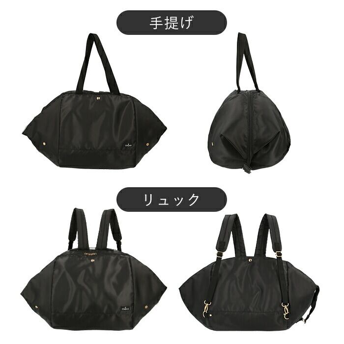 ・肩掛けのトートバッグとして、付属のショルダー紐を引き出して金具を留めればリュックとしても使える2WAY仕様♪