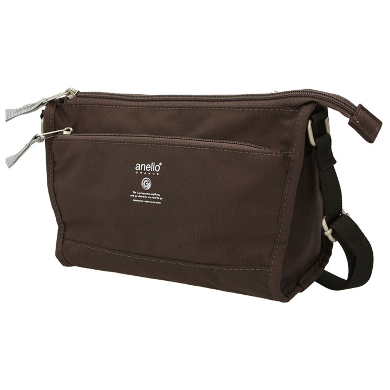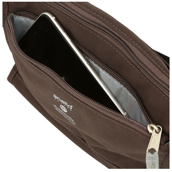 ・フロントのファスナーポケットは、控え目にプリントされたanello GRANDEのロゴがポイント!スマホを収納するための定位置にしてもOK!(※スマートフォンのサイズによっては、収納できない場合もございます。)