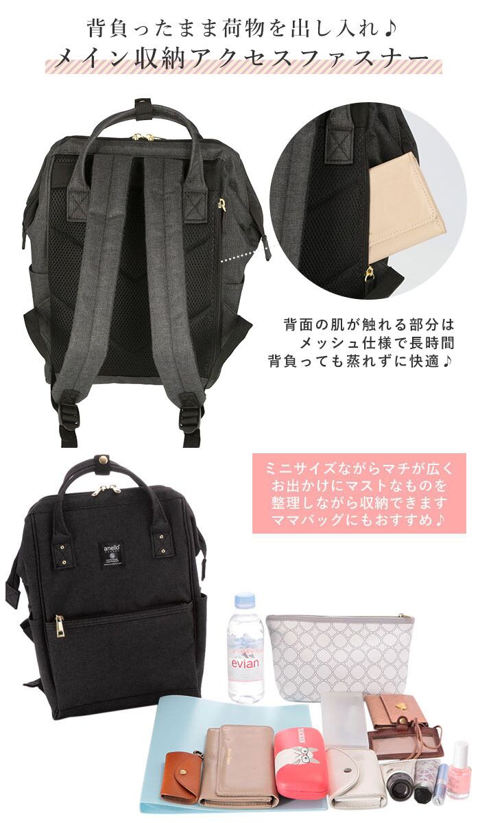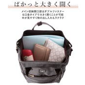 ・背面にメイン収納にアクセスできるファスナー付き。外出先でリュックを肩に掛けたままでも物の出し入れがしやすく便利♪
