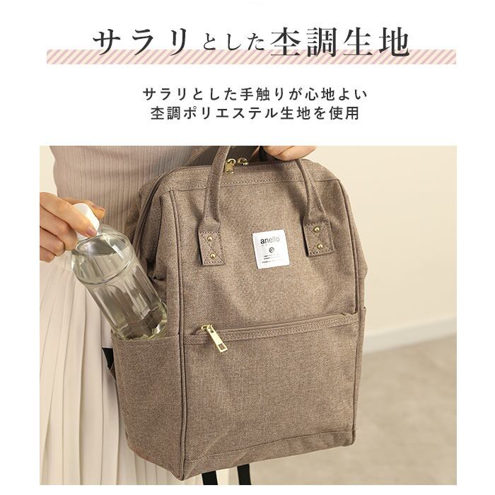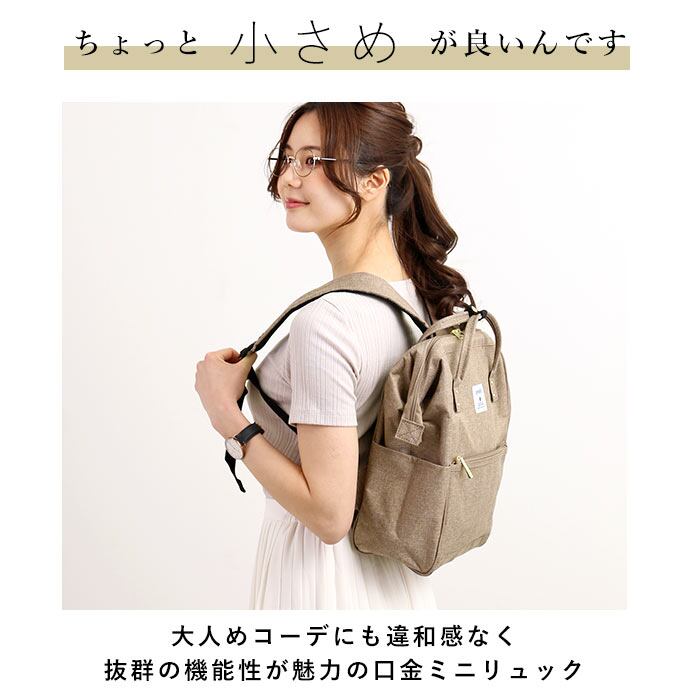 ・少し粗めに織り込んだキャンバス生地を思わせる、素朴な風合いの杢調ポリエステル生地を使用したanello GRANDEの口金ミニリュック。