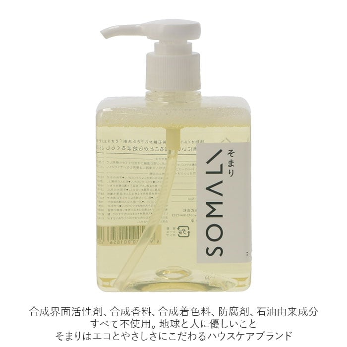 ・合成界面活性剤、合成香料、合成着色料、防腐剤、石油由来成分、すべて不使用。地球と人に優しいこと。そまりはエコとやさしさにこだわるハウスケアブランド。
