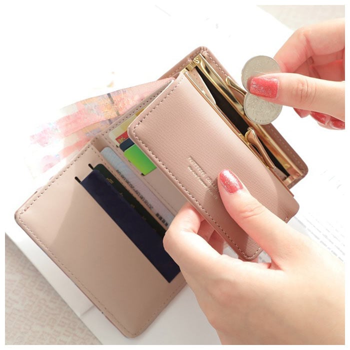 ・ニュアンスカラーにゴールドパーツをあしらったおしゃれで使いやすいミニウォレット◎