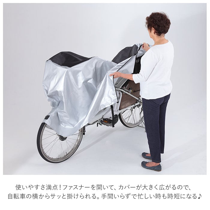 ・使いやすさ満点!ファスナーを開いて、カバーが大きく広がるので、自転車の横からサッと掛けられる。手間いらずで忙しい時も時短になる♪