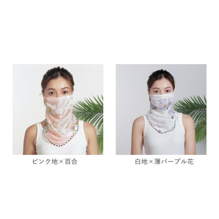 フェイスカバー uv 通販 マスク ネックカバー おしゃれ 紫外線対策 uvカット 洗える 花柄 シフォン フェイスマスク 夏用 ストール スカーフ 日焼け防止 ランニング 薄手 冷感 母の日 ギフト プレゼント ネックガード