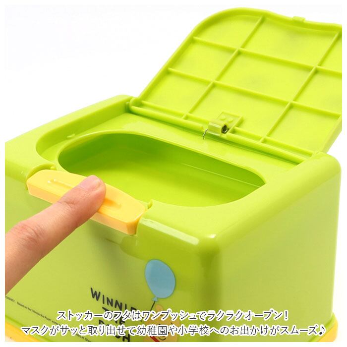 ・ストッカーのフタは、ワンプッシュでラクラクオープン!マスクがサッと取り出せて、幼稚園や小学校へのお出かけがスムーズ♪