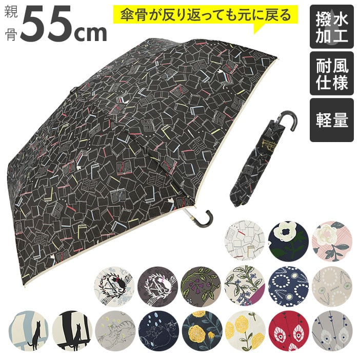 ・カラフルな傘生地に動植物の絵柄が描かれた、耐風折りたたみ傘!(親骨55cmタイプ)