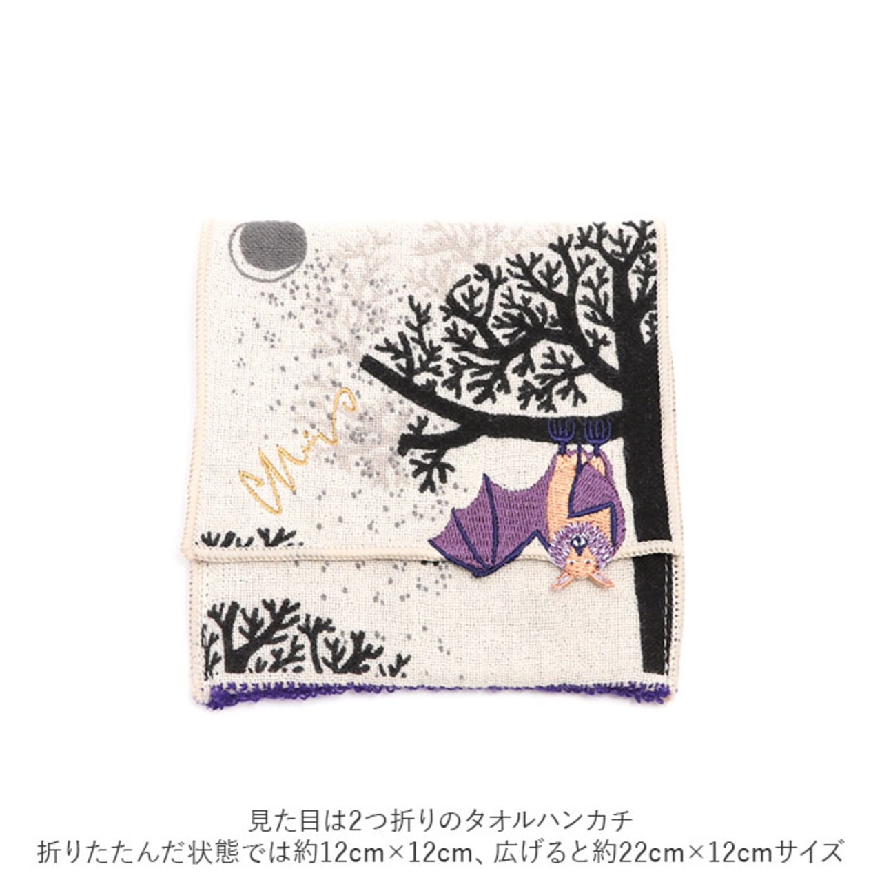 ・見た目は2つ折りのタオルハンカチ。折りたたんだ状態では約12cm×12cm、広げると約22cm×12cmサイズ。