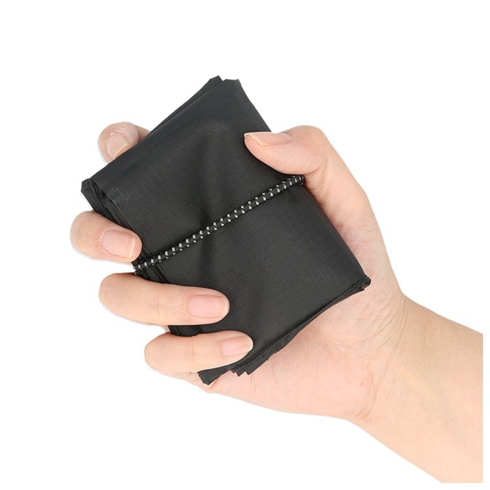 ・さらにゴムバンドでまとめることで広がらず薄くなるので、ハンカチ感覚で気軽に持ち運ぶことができる。