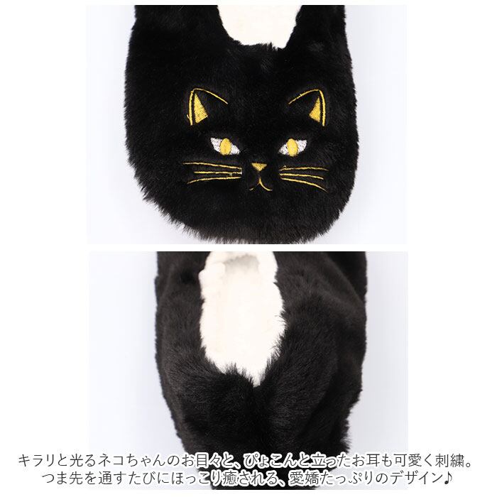 ・キラリと光るネコちゃんのお目々と、ぴょこんと立ったお耳も可愛く刺繍。つま先を通すたびにほっこり癒される、愛嬌たっぷりのデザイン♪