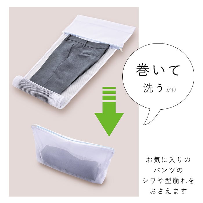 洗濯ネット 通販 パンツ用 ズボン用 スラックス用 ホームクリーニング 便利グッズ おしゃれ着洗い お家洗い 洗濯用品 パンツ専用 ランドリーネット 洗濯グッズ 巻いて洗える ボトムス 洗濯機用品 パンツのための洗濯