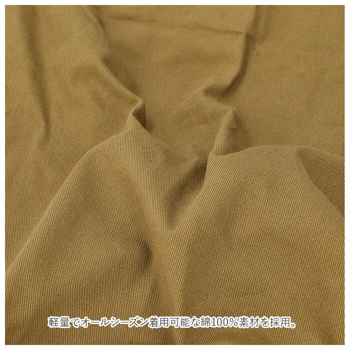 ・軽量でオールシーズン着用可能な綿100%素材を採用。