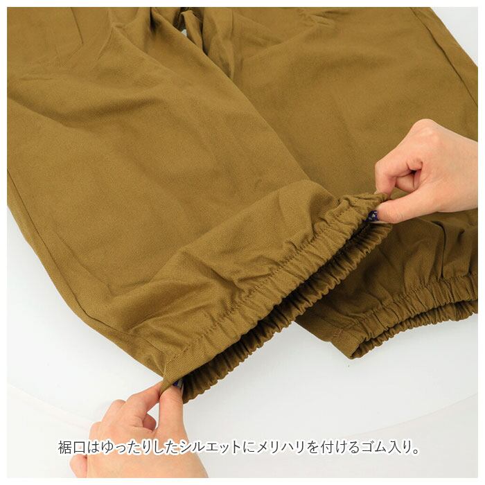 ・裾口はゆったりしたシルエットにメリハリを付けるゴム入り。