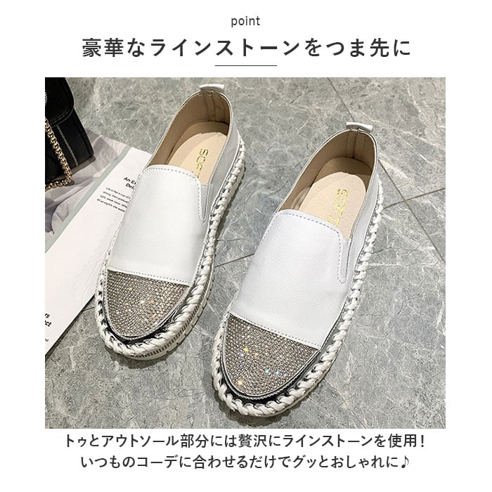 ・トゥとアウトソール部分には贅沢にラインストーンを使用!いつものコーデに合わせるだけでグッとおしゃれに♪