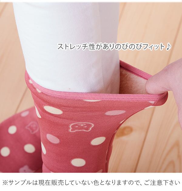 24cmのロング丈サイズ!柔らかなボアが素足をやさしく包み、ストレッチ性もあるので気持ちのいい履き心地です。裏面に滑り止めがついているので、廊下や階段でも滑らず安心ですね。