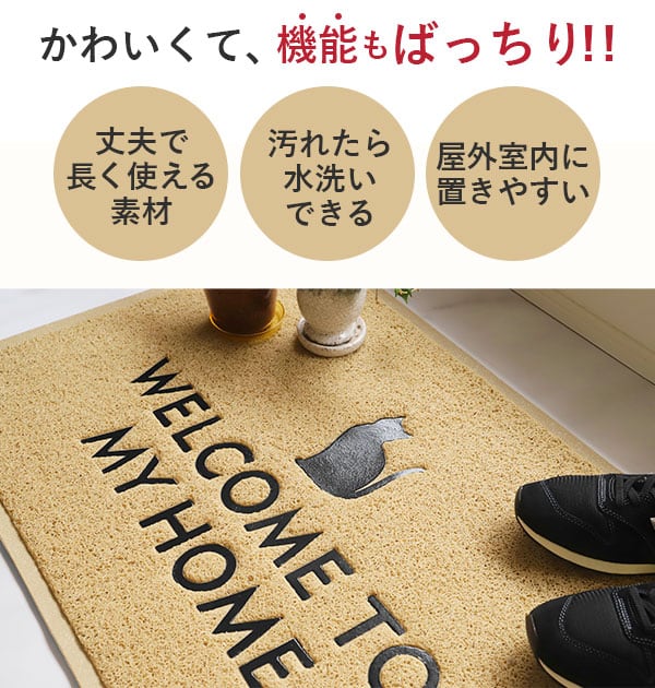 水洗いのできるエントランスマットです。PVC素材で出来ているので洗えて、薄型でかさばらず置き場所を選びません。カラー、種類も豊富で、玄関をおしゃれに彩るアイテムです。