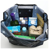 ・2Lのペットボトルが4本入る軽くて強いエコバッグ。レジ袋と同じ形だから使いやすい。
