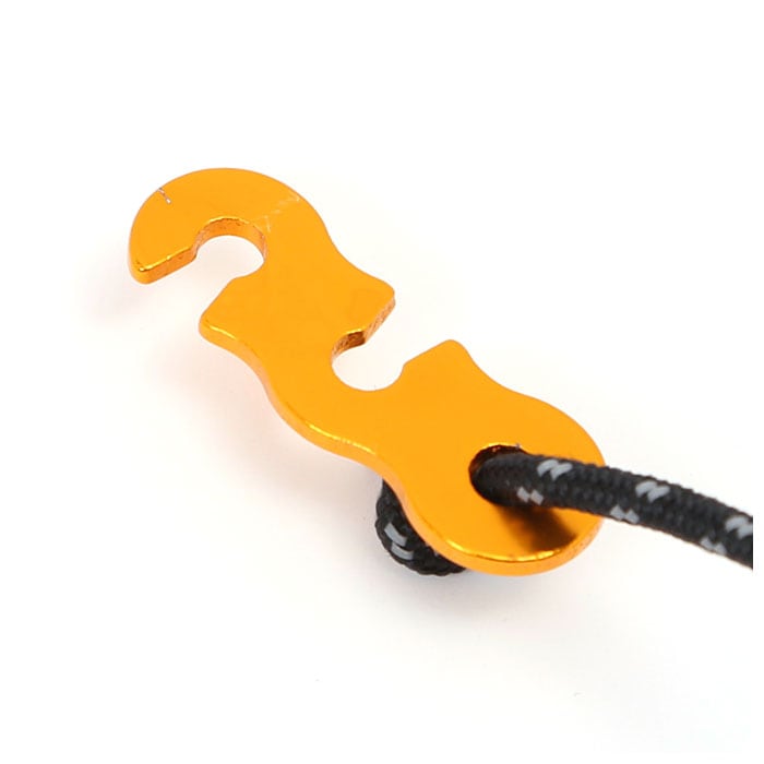 ・ガイドロープの長さや張り具合を調節するための「アルミニウム製自在金具」が付属。強い風が気になる日も、テントやタープをしっかりと設営可能。