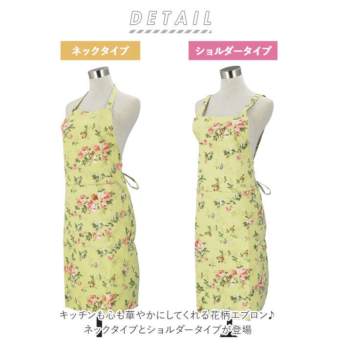 ・キッチンも心も華やかにしてくれる花柄エプロン♪ネックタイプとショルダータイプが登場。