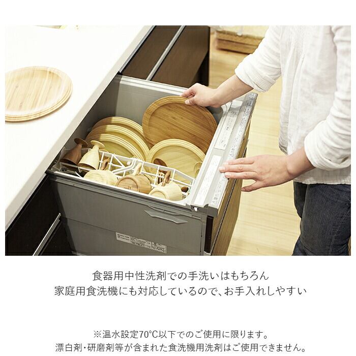 ・食器用中性洗剤での手洗いはもちろん、家庭用食洗機にも対応しているので、お手入れしやすい。(※温水設定70℃以下でのご使用に限ります。漂白剤・研磨剤等が含まれた食洗機用洗剤はご使用できません。)