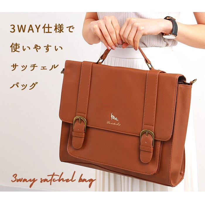 ・金色のプレートがアクセント!たっぷり入って3WAYで使えるサッチェルバッグ。